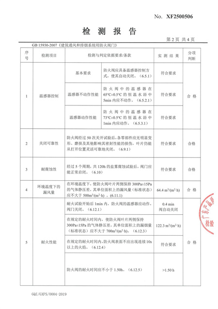 防火阀检测报告